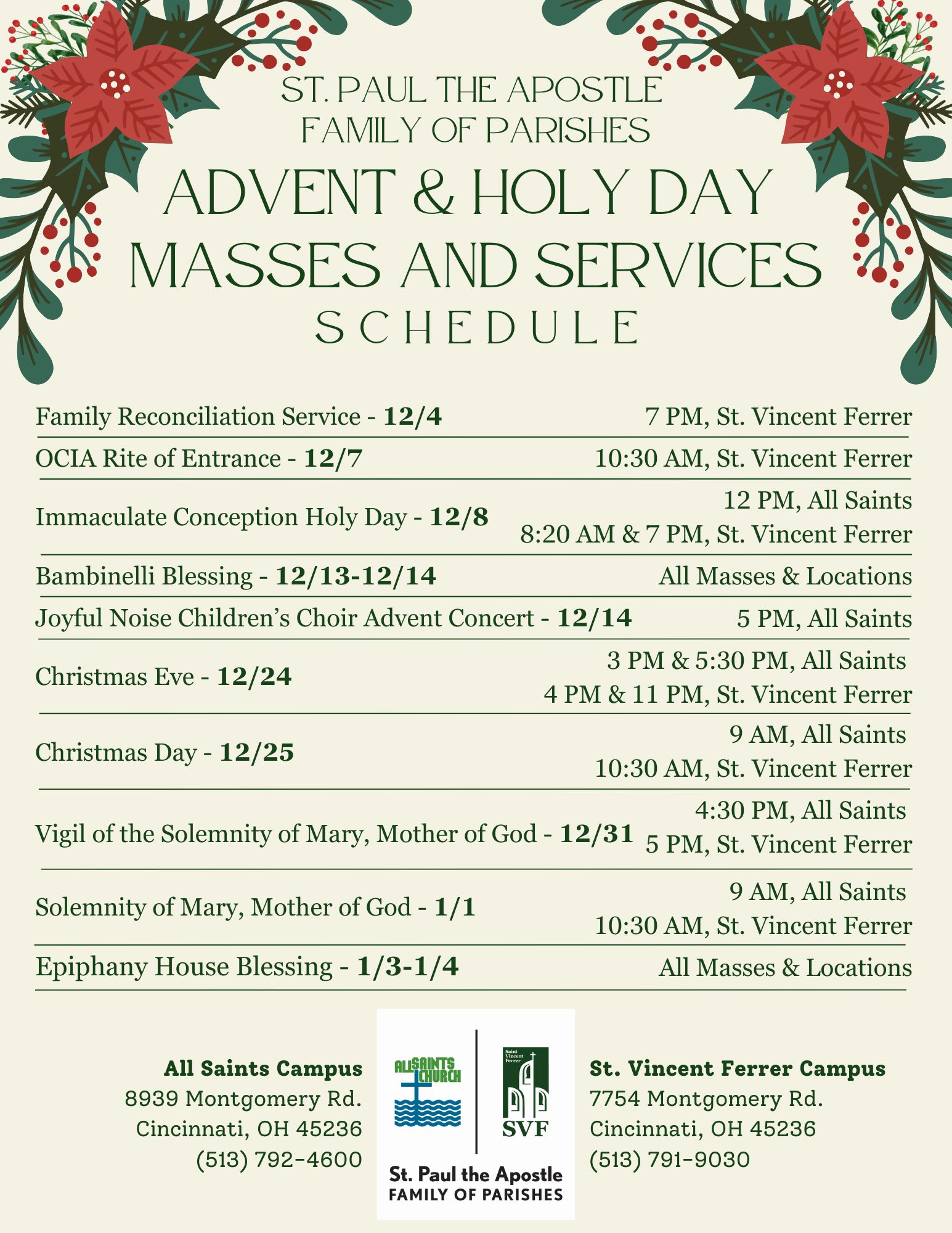 We invite you to join St. Vincent Ferrer Catholic Church, and St. Paul the Apostle Family of Parishes!